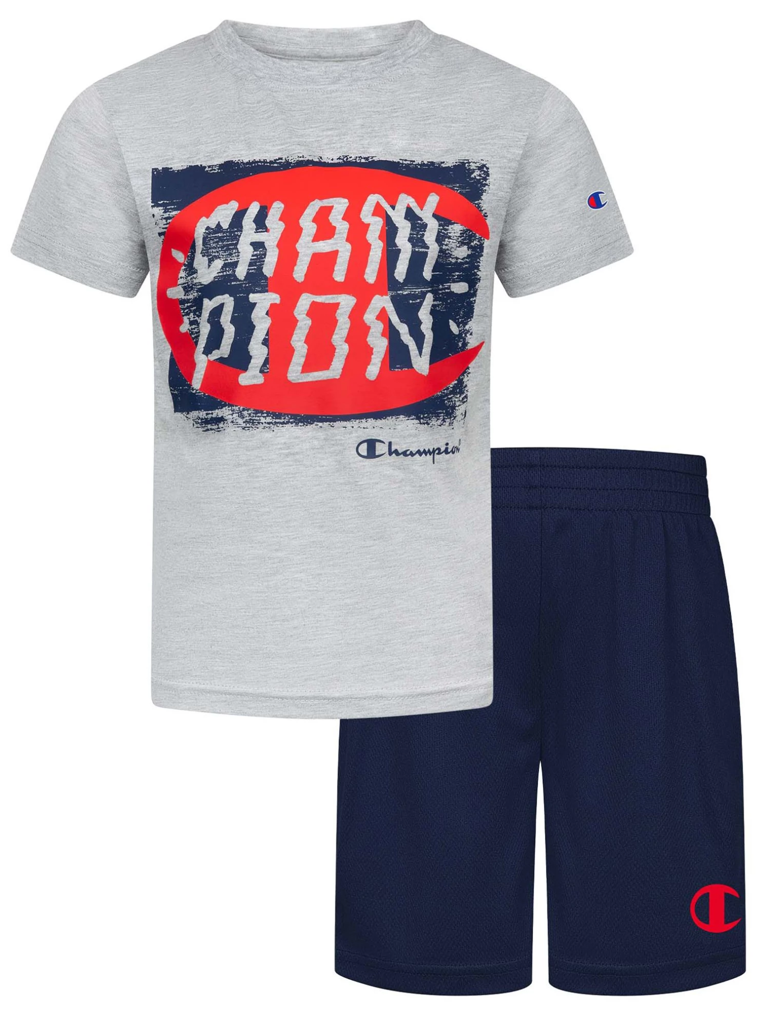 - Shorts offer an elastic waistband and Champion® logo on the leg