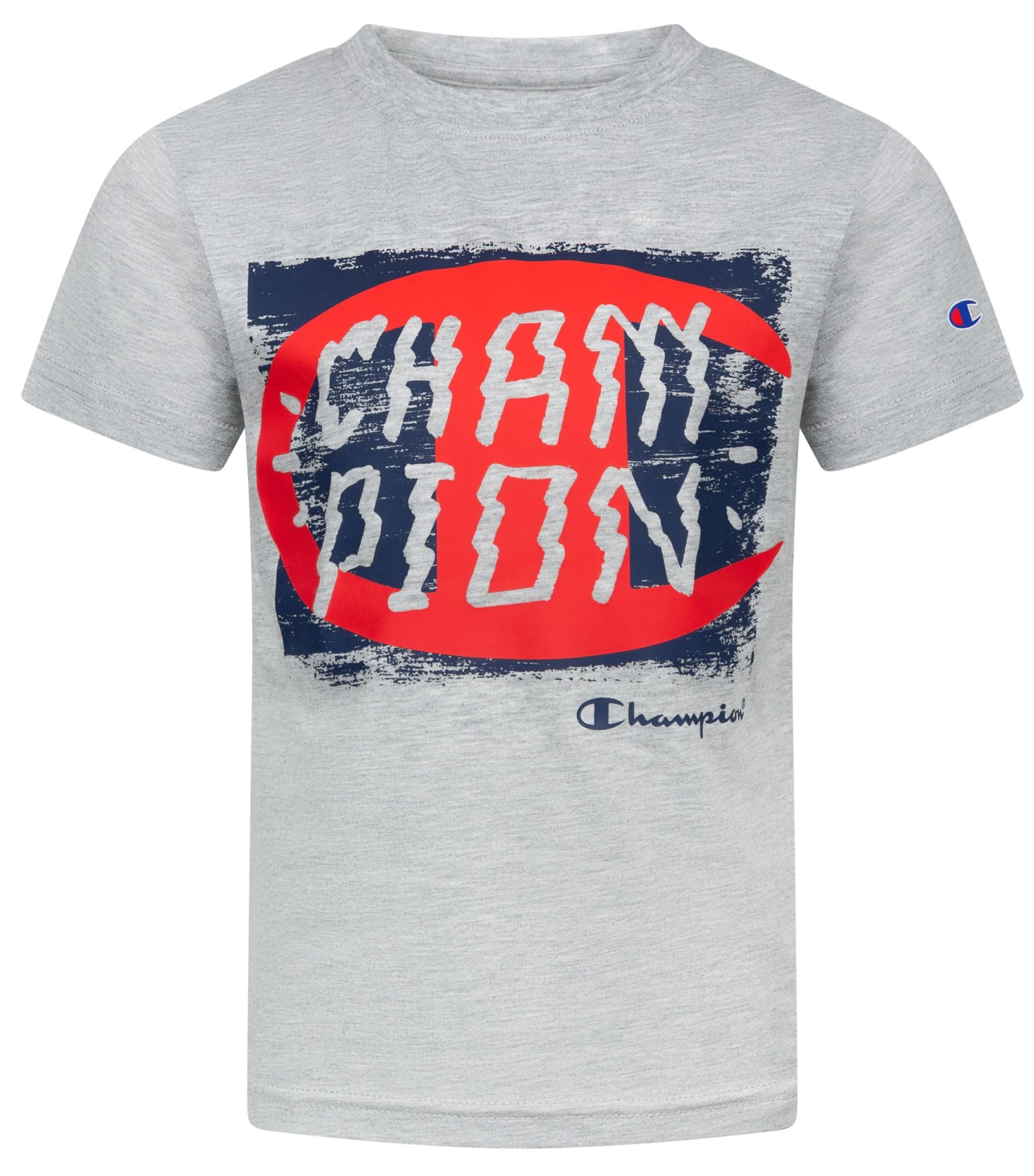 - Crewneck t-shirt features Champion® logo on the front
