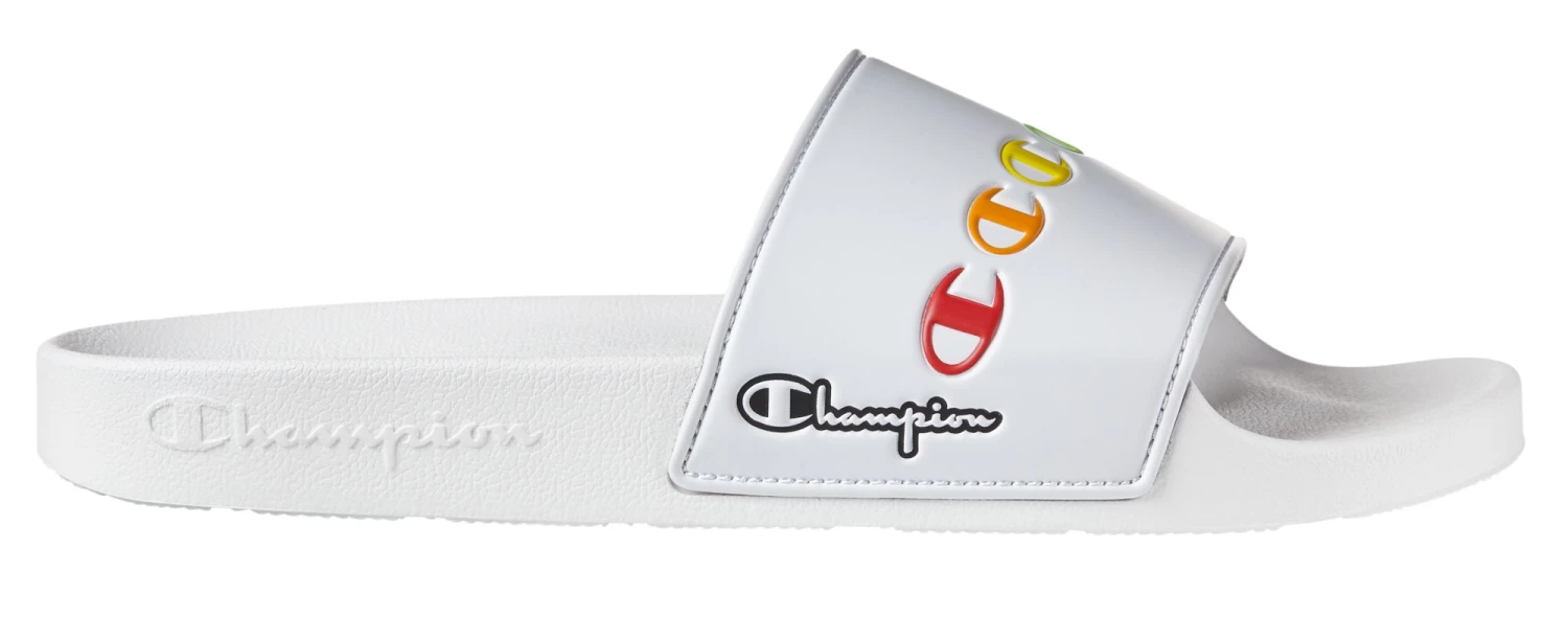 Slip your feet in to the Champion® IPO Rainbow slide and experience the comfortable feel and stylish classic look for yourself.