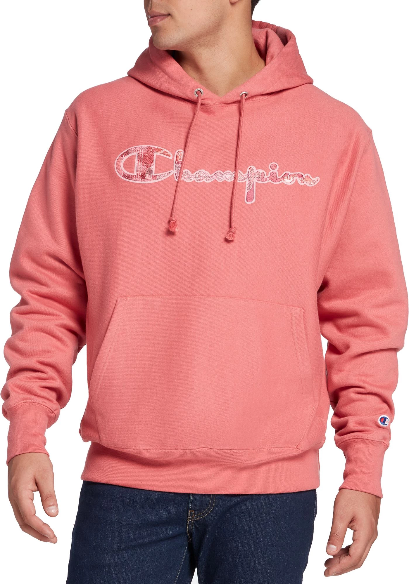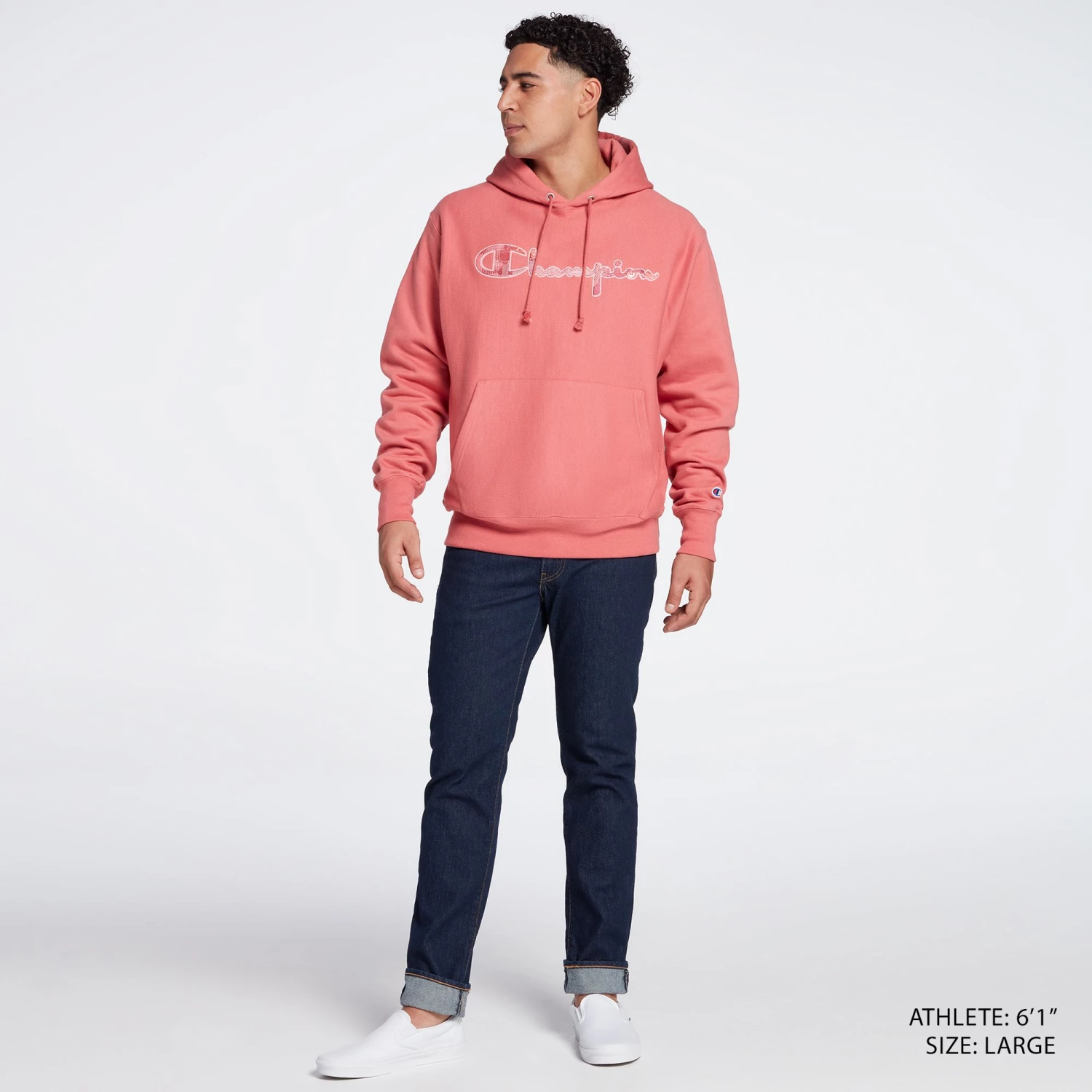 - Champion® tonal multi-color vintage script logo applique at center chest