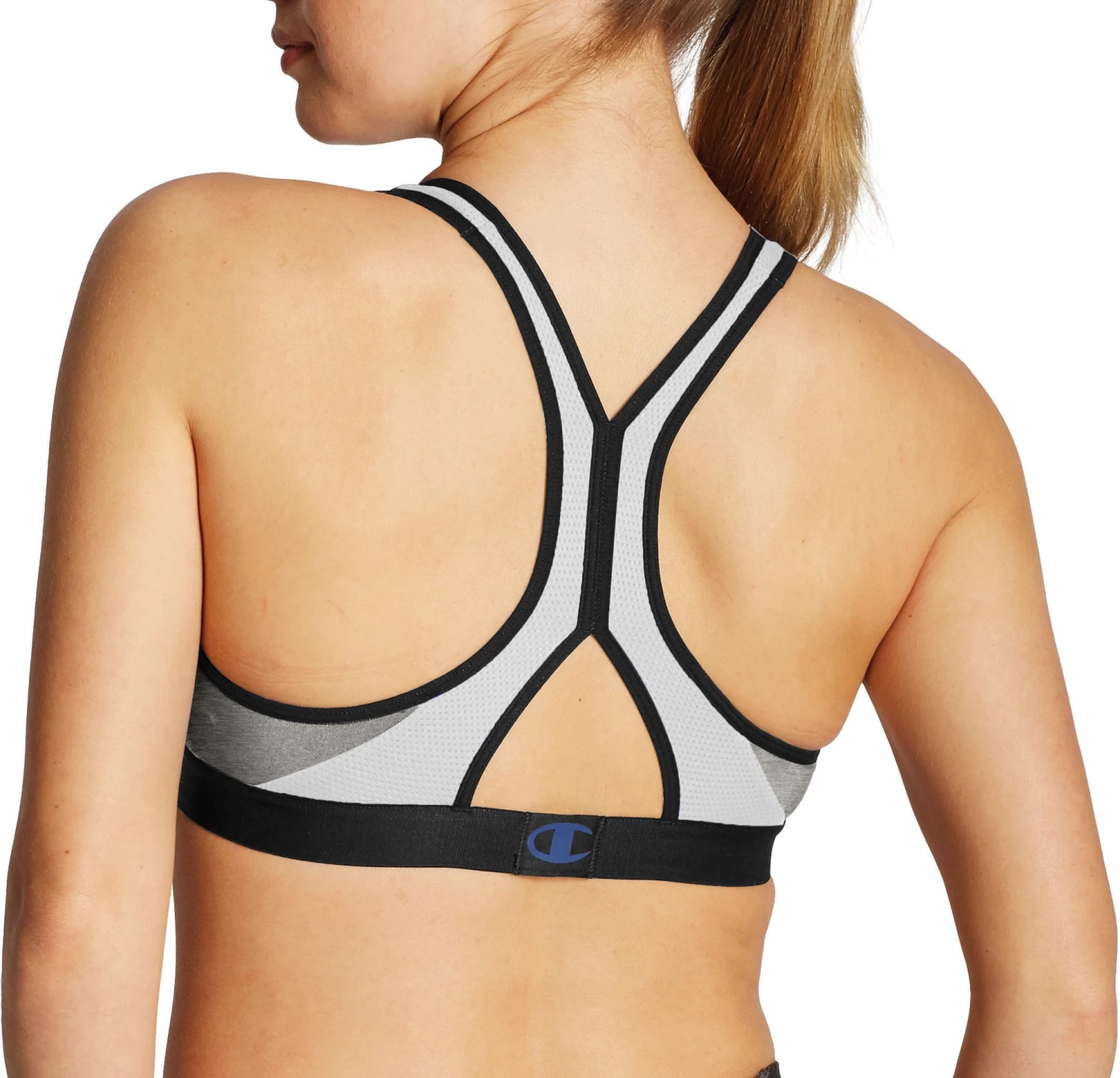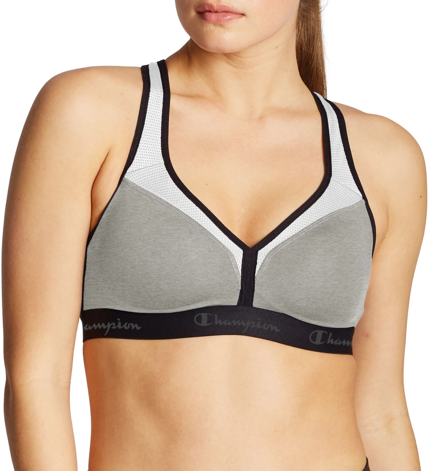 Confidently tackle that next set knowing the Champion® Women’s Curvy Sports Bra will keep you cool and supported. The v-neckline and modified racerback design provides a sleek, curvy fit that flatters your figure. Double Dry™ moisture management technology speeds evaporation for dry, irritation-free wear. Mesh inserts in key heat zones and a power mesh back deliver ventilation that keeps you dry from start to finish.
